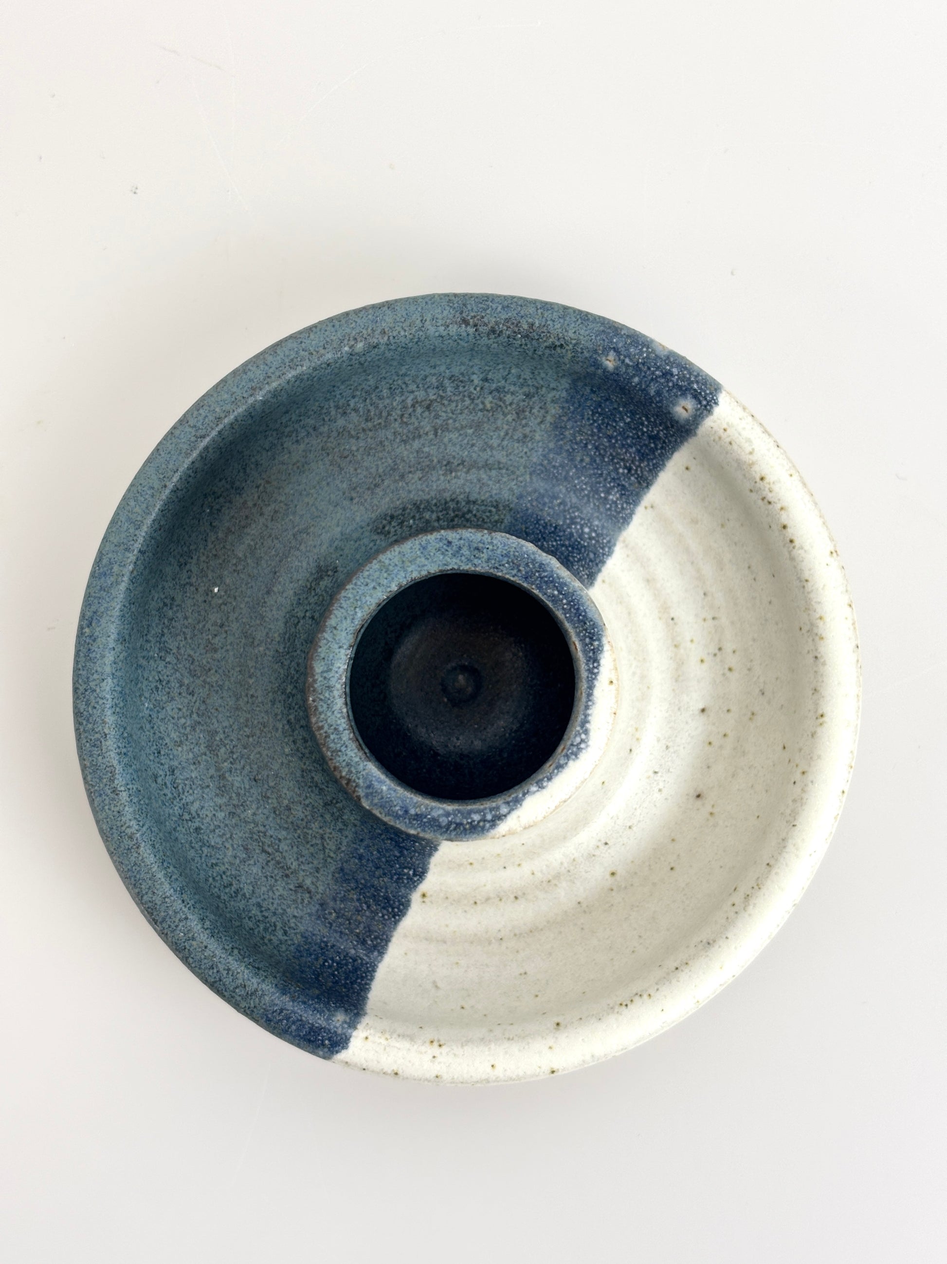 Candle holder in overlapping Matt white and blue. (Candles not included)