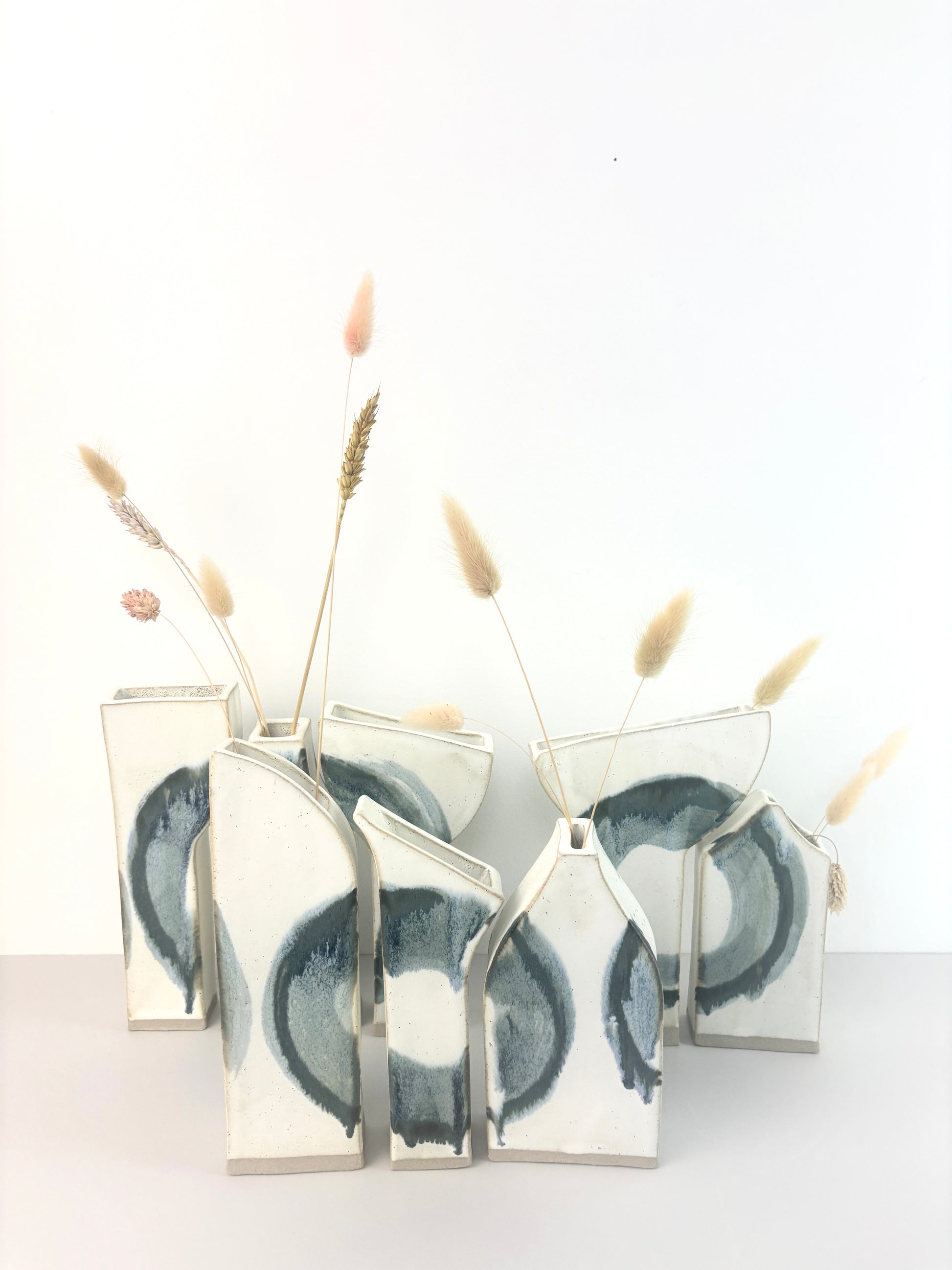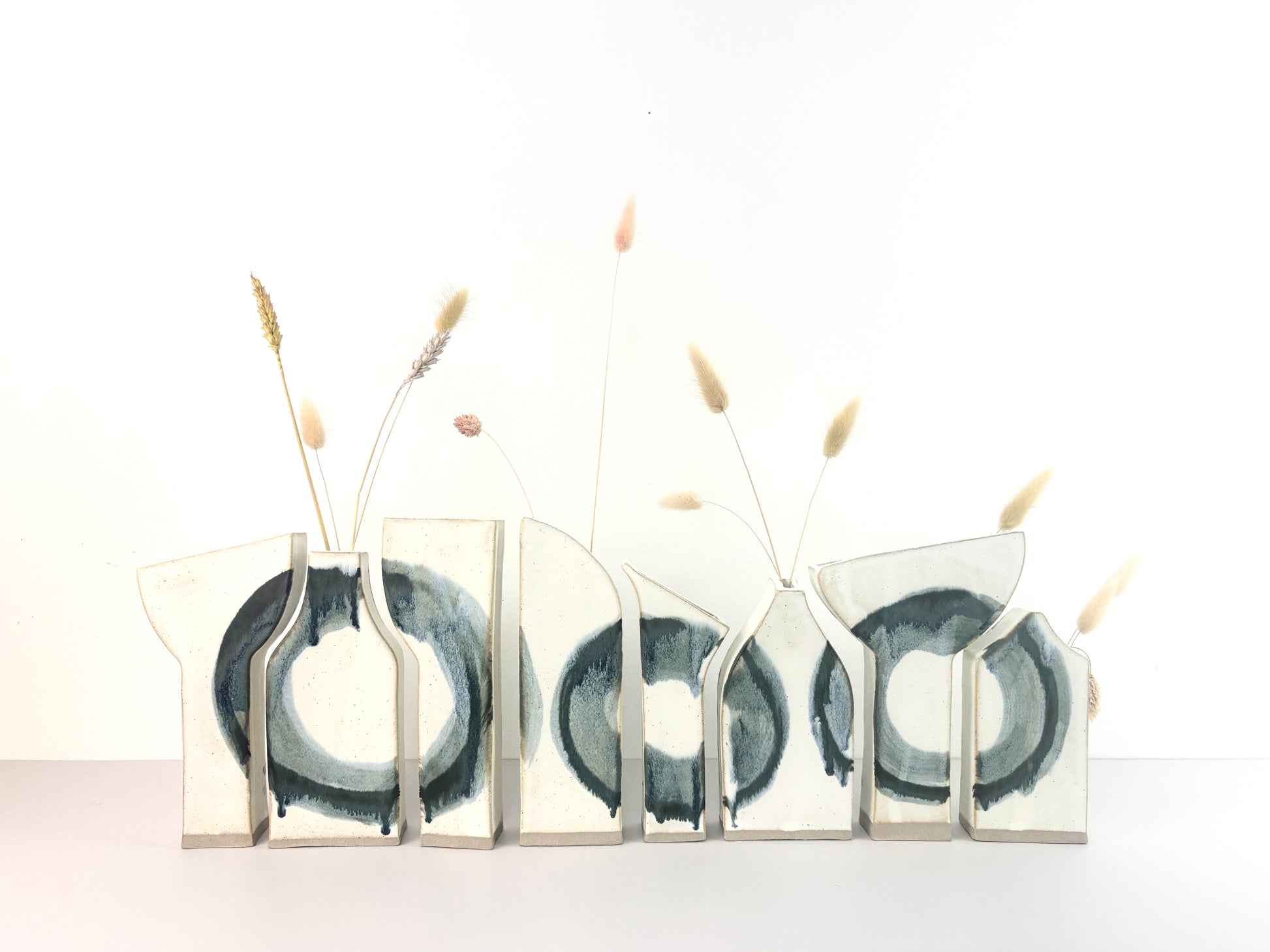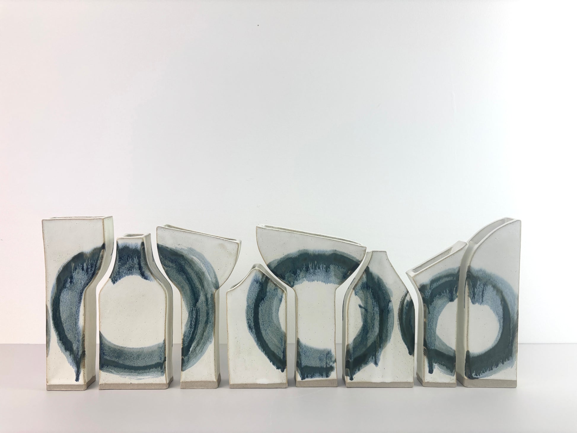 This collection of ceramic vessels embodies the idea that individuality and unity can coexist in harmony. Each piece, with its distinct form, surface, and character, represents a unique role within a shared whole—mirroring the way each member of a family brings their own strengths, skills, and purpose. Together, they lean on one another, filling gaps and offering support where it is needed most. Their variations speak to the beauty of difference, while their arrangement reveals a quiet resilience and an invisible network of connection.