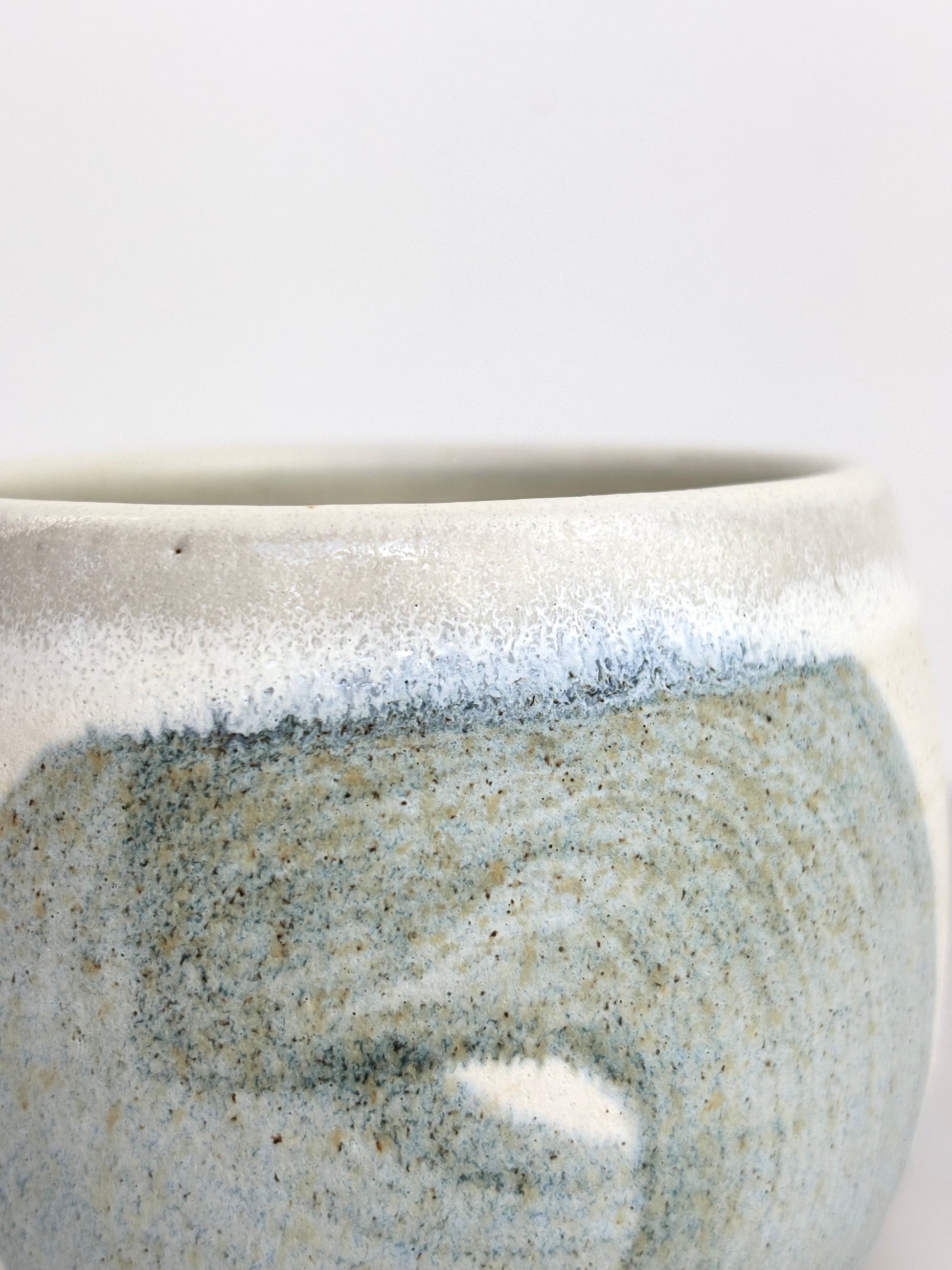 Cream Matt glass with blue/green circles.